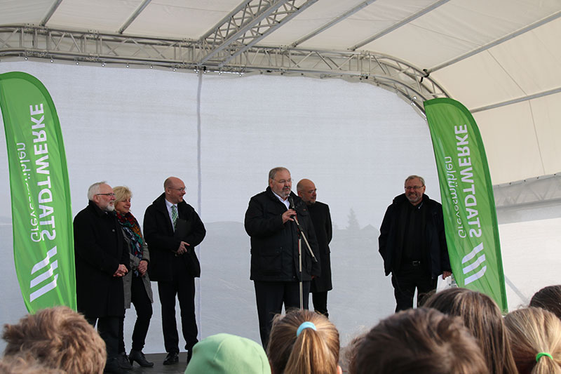 Ende April führte der Verein „Stadt ohne Watt“ bereits zum 6. Mal den „Tag der Erneuerbaren Energien“ durch. Ca. 400 Schülern nutzten die Möglichkeit, sich mit Anlagen vertraut zu machen, die erneuerbare Energien nutzen. Die Vereinsmitglieder Wind-projekt, Zweckverband Grevesmühlen und Stadtwerke Grevesmühlen zeigten und erläuterten eine Windenergieanlage, das Klärwerk, den Wasserlehrpfad sowie eine Photovoltaikanlage und eine Biogasanlage. Die Vereinsmitglieder waren hoch erfreut, dass der Energieminister des Landes Mecklenburg Vorpommerns, Herr Pegel, Gast des Vereins war und das landesweite Aktionswochenende zu erneuerbaren Energien in Grevesmühlen eröffnete.